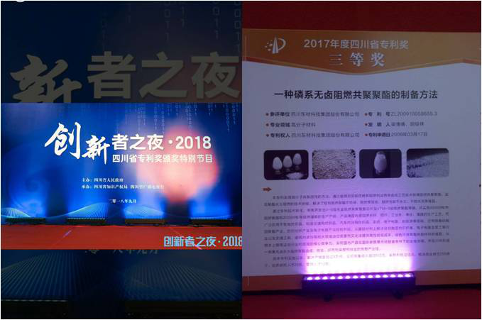 在之前的四川省專利獎評審委員會評審過程中,總共42個專利被省政府授予2017年四川省專利獎,其中公司申請的國家發(fā)明專利《一種磷系無鹵阻燃共聚聚酯的制備方法》榮獲三等獎。