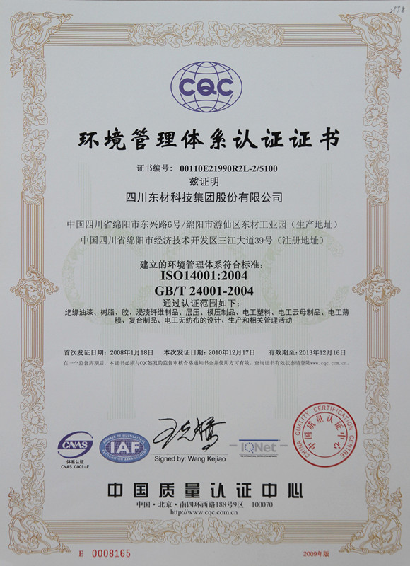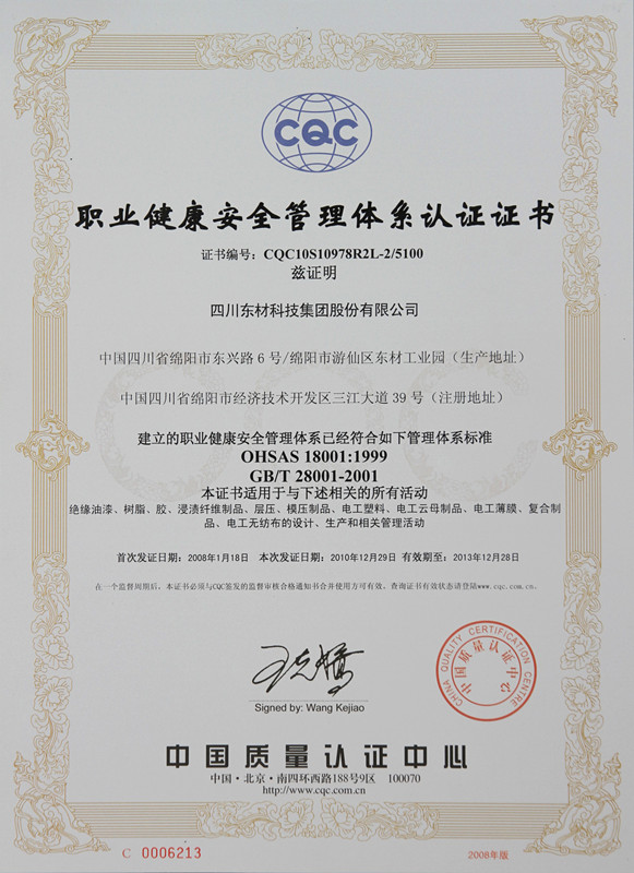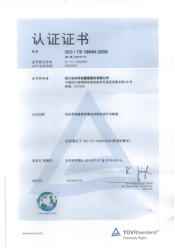 東材科技在國(guó)內(nèi)同行業(yè)企業(yè)當(dāng)中率先通過國(guó)際ISO9001的質(zhì)量體系認(rèn)證,通過ISO10012國(guó)際計(jì)量體系、ISO14001環(huán)境管理認(rèn)證體系、OHSAS18001職業(yè)健康安全體系、GBT 29490知識(shí)產(chǎn)權(quán)管理體系、GBT23331能源管理體系認(rèn)證企業(yè)、IATF16949汽車質(zhì)量管理體系認(rèn)證,不僅使公司產(chǎn)品質(zhì)量保障體系達(dá)到國(guó)際化的新標(biāo)準(zhǔn),而且為產(chǎn)品質(zhì)量的穩(wěn)定提供了強(qiáng)有力的保障。